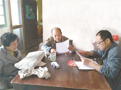 李夏(右一)在长安镇高杨村走访贫困户。王庆华 摄