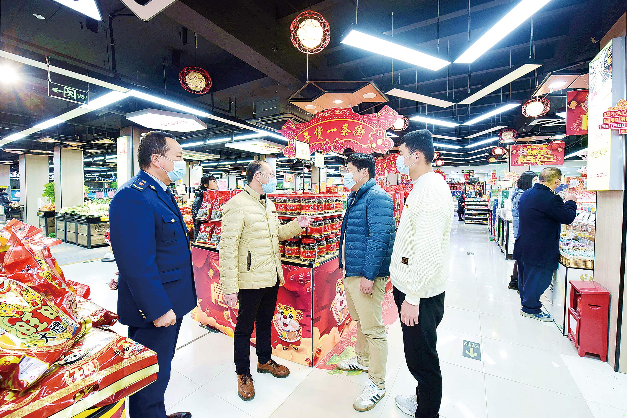 临近春节,福建省永泰县纪委监委联合有关部门成立专项督查组,到辖区内酒店、商超、特产店等地开展监督检查,深挖隐形变异“四风”问题,持续净化节日风气。图为日前,该县纪委监委“四风”专项督查组在某超市了解相关情况。叶静文 摄