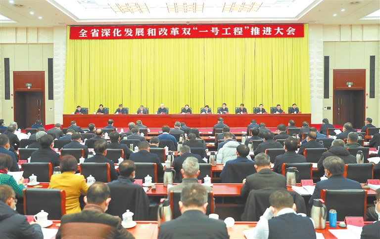 2月7日,春节长假后上班第一天,省委、省政府召开全省深化发展和改革双“一号工程”推进大会,大力推动实施数字经济做优做强“一号发展工程”、营商环境优化升级“一号改革工程”,研究部署全面深化改革攻坚行动。本报首席记者 海 波摄