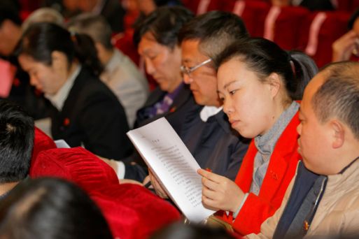 2017年3月3日下午2时30分,共青城市党员领导干部警示教育大会现场,党员干部正在阅读《黄斌忏悔书》。刘健摄