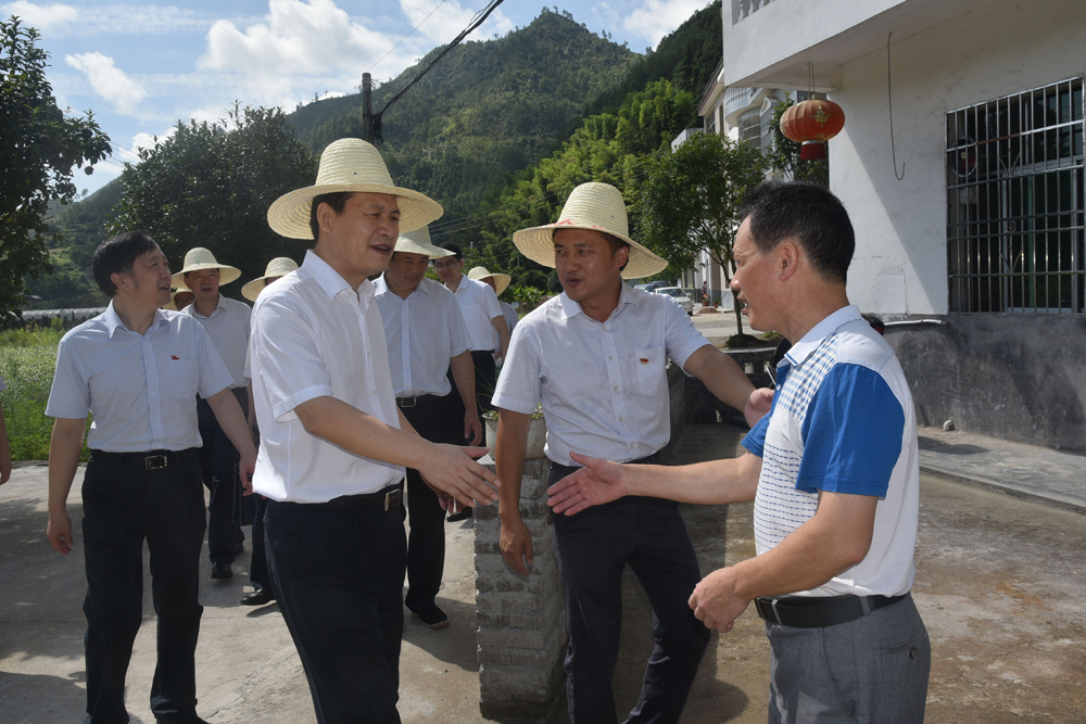 顶烈日冒高温,省委常委、省纪委书记孙新阳在赣州市上犹县梅水乡园村走访看望贫困户。