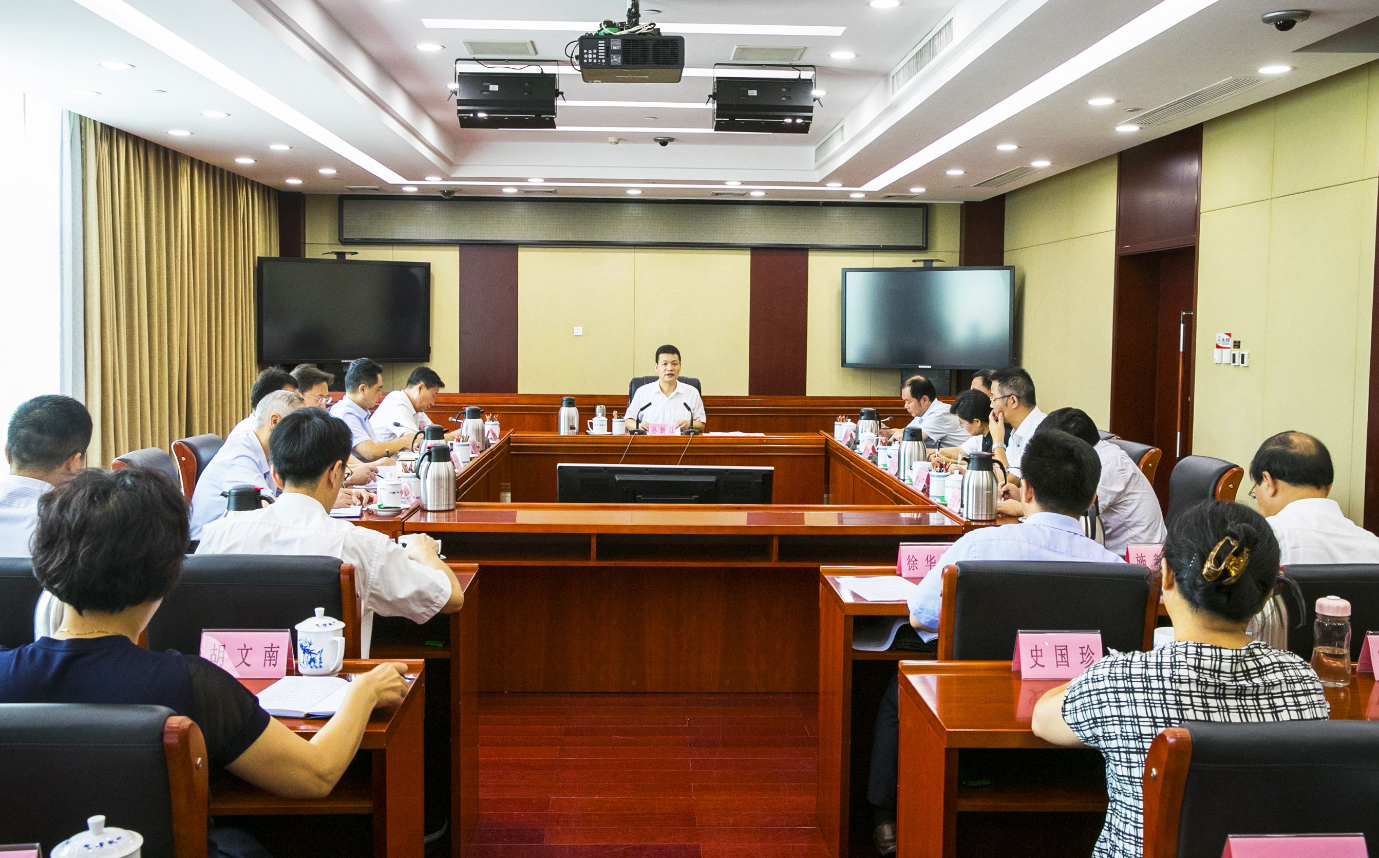 图为省委常委、省纪委书记、省监委主任孙新阳主持会议并讲话。