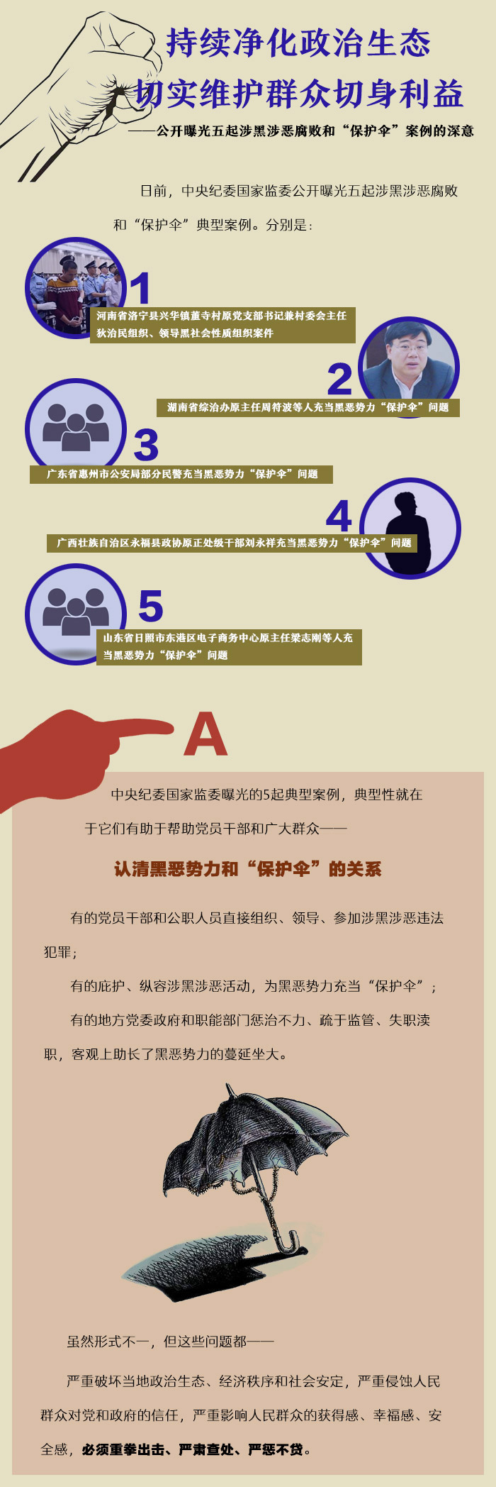 持续净化政治生态 切实维护群众切身利益 ——公开曝光五起涉黑涉恶腐败和"保护伞"案例的深意